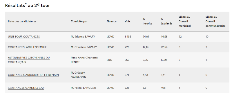 Résultats des municipales 2026 à Coutances