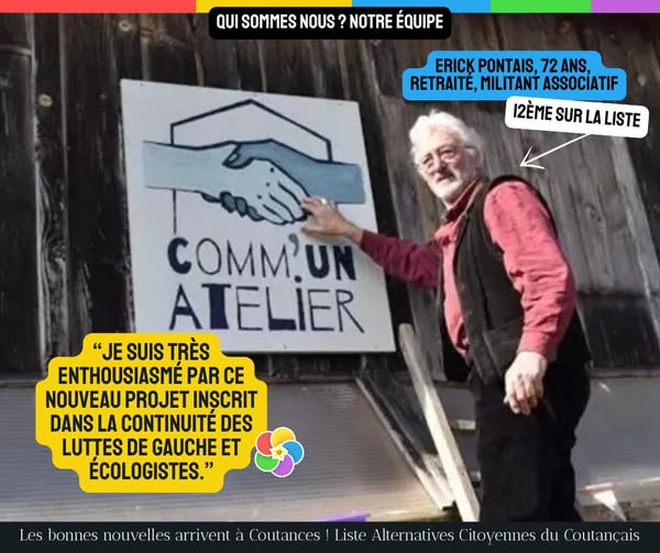 « Conseiller municipal à Coutances de 1983 à 1995, aujourd’hui fortement engagé dans le mouvement associatif, je suis très enthousiasmé par ce nouveau projet inscrit dans la continuité des luttes de gauche et écologistes. »